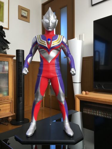皆さん、こんにちはm(_ _)m そろそろウルトラ怪獣の再UPにも限界を感じ始めて来たパットマンXです でも今日もそのパターンで行きますよ(懲りない人…)。 怪獣無法地帯のウルトラマンティガ(30㎝)です。 何ヶ所か塗装が剥げているのは3月の震災で落下し…